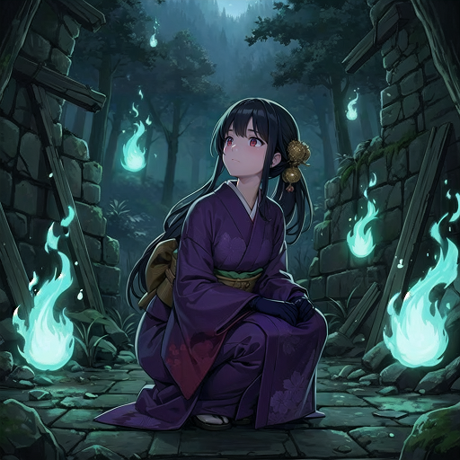 灯るは狐火、微かにゆらぎ、風の音が遠くに響く。